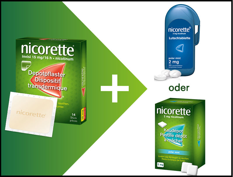 Pendant la phase d’abstinence qui suit l’arrêt tabagique, il arrive souvent que certains fumeurs soient victimes d’une envie irrésistible de fumer en raison de déclencheurs externes et qu’une rechute soit probable. Afin d’éviter cette rechute tabagique, les milieux professionnels attirent l’attention sur l’utilisation combinée de produits de substitution nicotinique. Ce traitement consiste à associer le patch Invisi de 15 ou 10 mg à l’utilisation d’une Gomme à mâcher (2 mg) ou d’un comprimé à sucer (2 mg) pour soulager l’envie irrépressible de fumer. Si, en raison des circonstances décrites, les personnes prêtes à arrêter de fumer ont du mal à arrêter, il est nécessaire de se faire expliquer la méthode combinée par un médecin.